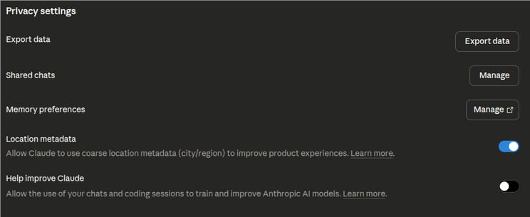 ⚠️ Worth Knowing Opting out stops future use of your data, but it won't undo anything already included in a training run that's in progress. It's prospective, not retroactive. |